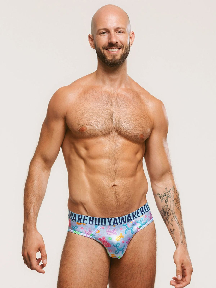 Bright, bold, and made to move! This satin brief brings playful energy to a classic underwear cut. Crafted from sleek stretchy satin, it features a smooth front pouch with supportive side panels and a seamless back for a clean finish. The wide Body Aware waistband adds a sporty touch, while the vivid balloon animal print makes a confident statement. Lightweight and comfortable with a hint of shine, it’s the perfect blend of everyday ease and standout style.