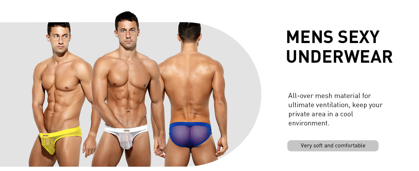 “Step up your underwear game with our Men’s Breathable Mesh Underwear! Keep the boys comfy and well-ventilated all day long with sexy low-rise, see-through designs. Perfect for hot men (and hot moments).”